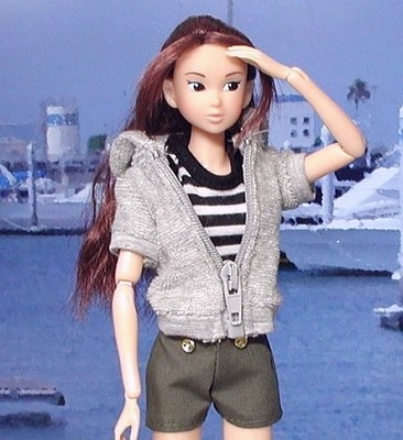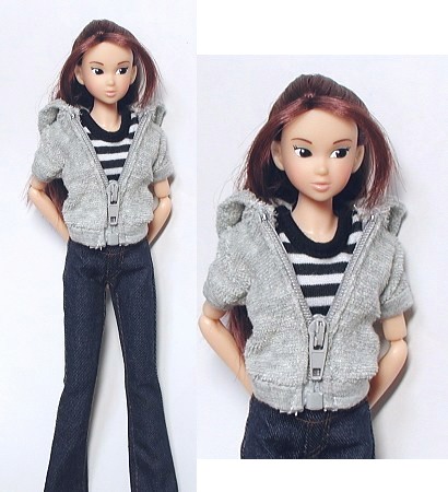 右 4.半袖パーカー+1.ボーダーTシャツ+ブーツカットジーンズ(手作り通販)