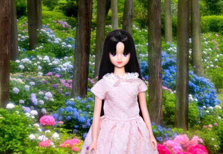 なでしこ@絵縫工房薄手ワンピース(ピンク) 紫陽花・梅雨