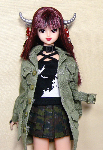 コート(ジャケット?)はウェアセットW44、ダークキャッスルキャミソールと迷彩スカートはアゾンです。