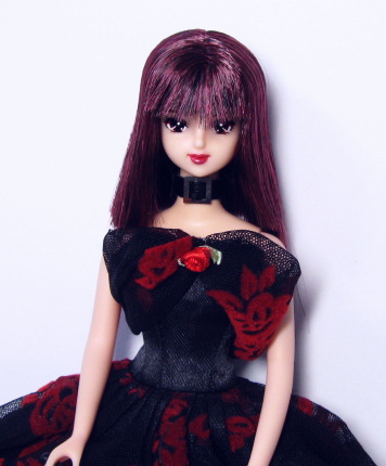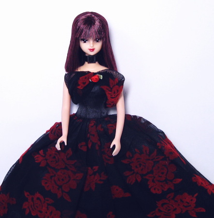 黒地に赤い薔薇模様のドレスです。B様に似合いそうな配色だと思ってオークションで買いました。