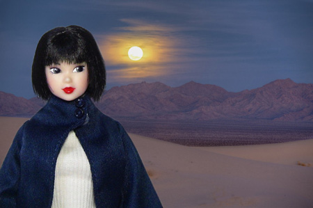 しらゆきmomoko@リーメント ドーリーファッション クラシカルデートスタイル 紺色ジャケット(ケープ)+セーター カディスの砂丘・砂漠・アメリカ・夜景